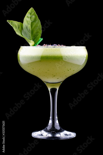 Exquisite cold cocktail with apple and basil on a dark background