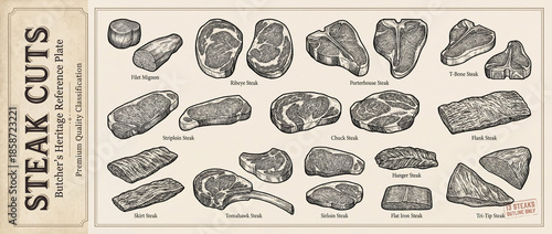Exquisite collection of engraved steak cuts showcasing premium butchery techniques