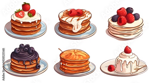 Exquisite Dessert Set: Pancakes with Fresh Berries and Panna Cotta for Gourmet Lovers