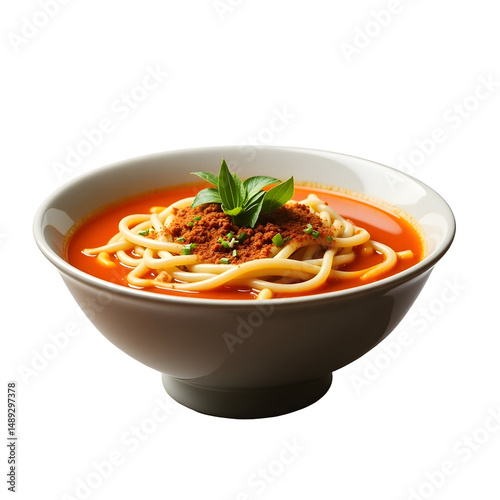 Exquisite Ramen Bowl, A Culinary Delight of Noodles, Vibrant Broth, and Fresh Herbs in Stunning Detail