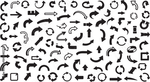 Extensive Collection of Black Arrows and Circular Arrows on White Background direction