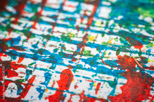 Extreme close up of colorful acrylic paint texture showing brush strokes. Selective focus.