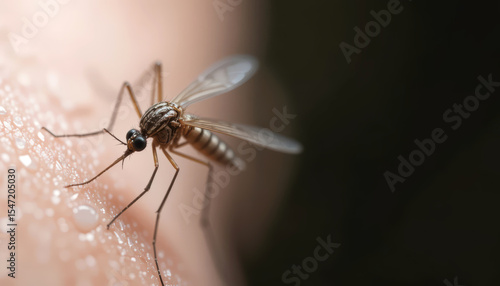 Extreme Macro Close-Up of Mosquito Biting Human Skin with Copyspace