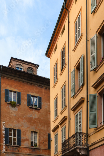 facades of old urban houses in Modena city
