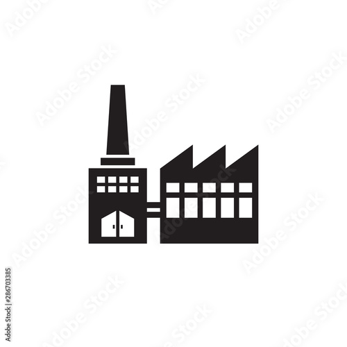 Factory plant - black icon on white background vector illustration for website, mobile application, presentation, infographic. Industrial building concept sign. Graphic design element.