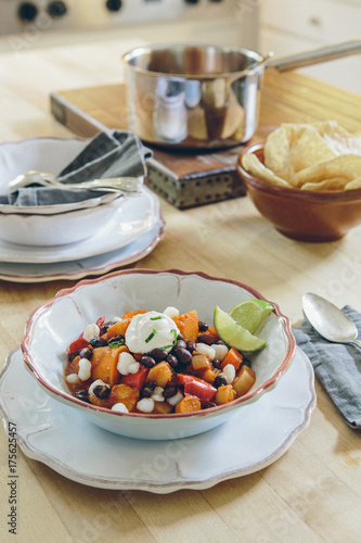 sweet potato, soup, artisanal, yellow, vertical, table, stew, sour cream, pot, onion, lime, kitchen, homemade, hand-made, gold, closeup, closeup, cheese, buttery, butter, breakfast, bread, bowl, bakery, baked goods, baked