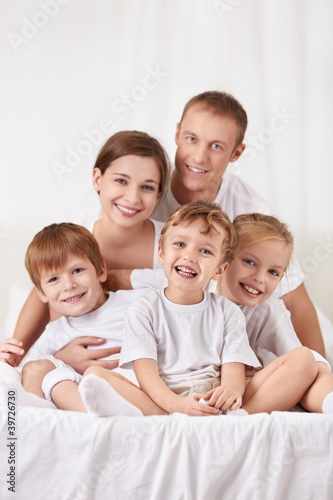 20s, 30s, bed, bedchamber, boy, caucasian, children, children, father, daughter, day, embracing, family, father, female, fun, girl, happiness, home, indoor, children, laughing, lifestyle, looking, love, male, man, morning, mother, eltern, people, playful, playing, portrait, pajama, reclining, relaxing, smiling, son, sunlight, white, window, woman, young
