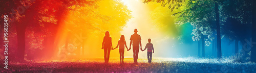 Family Diversity Rainbow Frame with Pride Text concept as A colorful border frame with a rainbow theme and the word Pride at the top representing family diversity. The frame offers ample copy space pe