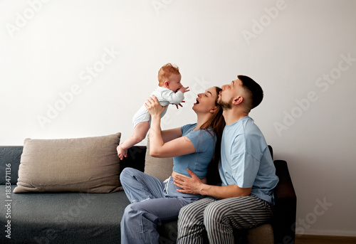 family, baby, living, room, home, play, together, joy, smile, afternoon, cosy, interaction, laughter, children, love, bonding, sofa, happiness, moment, connection, celebration, everyday, life, nurturing, care, parenthood, children, innocence, warmth, playful, mother, father, development, entertainment, playtime, togetherness, domestic, scene, indoor, casual attire, leisure, lifestyle, affection, emotion, support, simple, time, activity