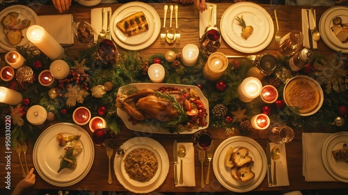 family gathering around the table, Christmas festive dinner