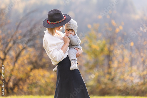 autumn, mother, baby, family, happiness, smile, love, human relationships, warm, emotion, scenery, seasonal, cosy, hat, warmth, sweater, outdoors, parenthood, joy, cuddling, knitted, fall, bonding, nature, gold, tree, leaf, motherhood, affection, togetherness, care, parenting, children, forest, tenderness