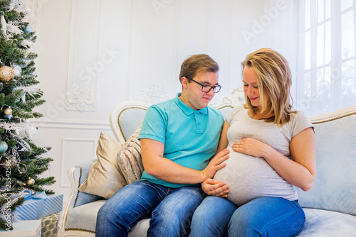 pregnant, pregnancy, christmas, christmas tree, girl, daughter, family, woman, maternity, man, funny, mother, denim, cute, belly, casual attire, female, eltern, person, happy, home, await, expecting, motherhood, parenthood, room, tenderness, young, tummy, curtain, apartment, caucasian, happiness, leisure, life, mother, maternal, positive, relax, rest, shirt, flat, male