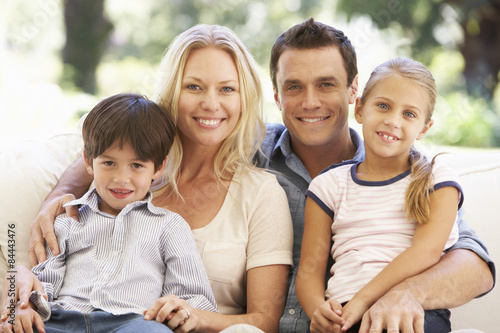 Family Sitting On Sofa At Home