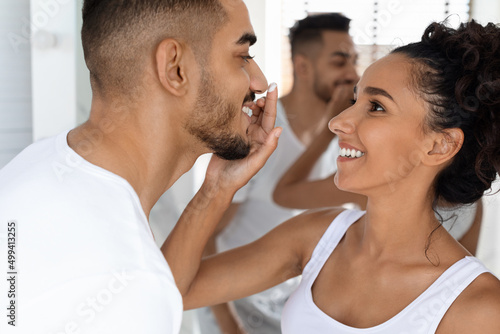 arab, couple, cream, applying, face, bathroom, laughing, closeup, care, cosmetic, domestic, girlfriend, life, hygiene, male, man, togetherness, home, happy, beauty, bonding, happiness, cheerful, funny, standing, lover, romantic, indoor, routine, husband, love, house, female, skincare, lifestyle, skin, young, wife, smiling, woman, spouse, boyfriend, touching, nose, playful, middle eastern, person, loving