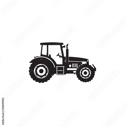 Farm tractor, black and white silhouette logo design isolated on a white background. A farm Tractor Silhouette. Vector illustration.