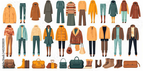 Fashion clothes set. Garment, accessory for men, women. Different apparel collection.