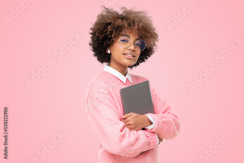 laptop, girl, isolated, student, african, holding, teenage, studio, school, online, course, cyberspace, happy, young, portrait, computer, standing, college, pink, fashion, university, wi-fi, app, background, nerd, education, model, modern, pretty, trendy, face, study, beautiful, lifestyle, cute, american, afro, coiffure, teenage, black, attractive, cheerful, goggles, tech, fun