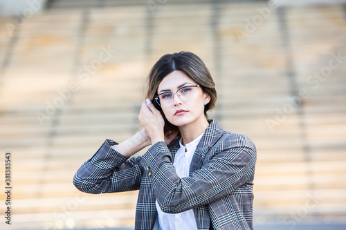 Fashion pretty young woman. Fashionable attractive european girl. Summer fashion style. Elegance person view.