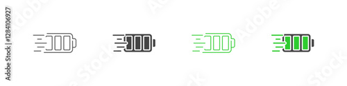 Fast charge vector icon with battery in motion.