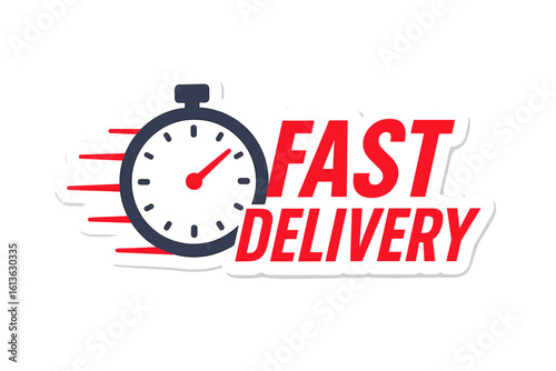 Fast delivery icon with stopwatch or timer. Express shipping service concept. Urgent online order symbol for logistics and transportation. Quick move sticker or label design.