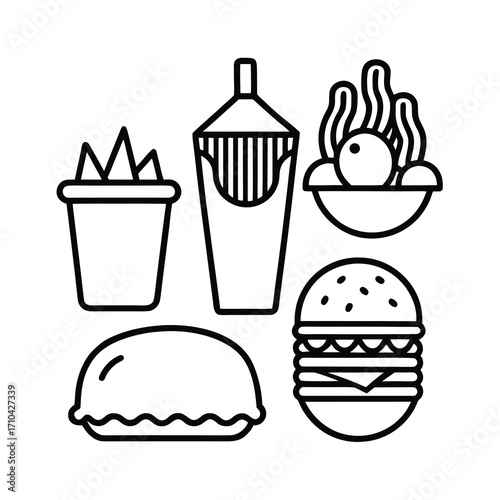 food, cake, icon, vector, hot drink, dessert, cupcake, illustration, set, hamburger, sweet, cup, sandwich, chocolate, breakfast, bakery, cream, eatery, fast, bread, candy, drink, burger, design, cheese