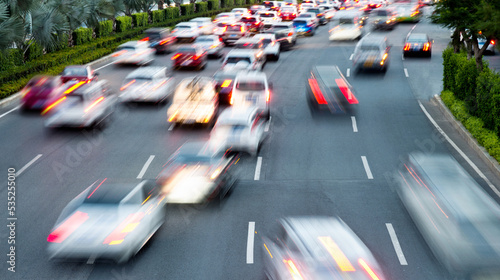 Fast moving traffic in city evening