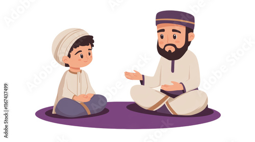 Father-Son Bonding: Flat Cartoon Illustration isolated transparent background