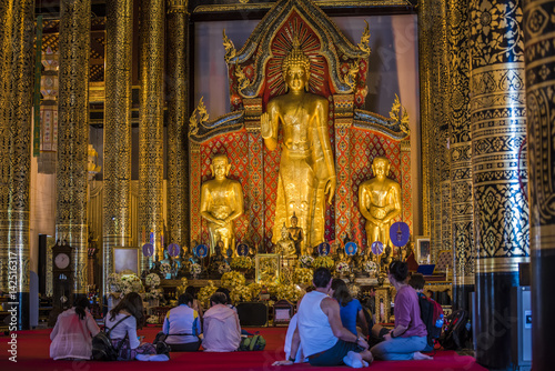 fedeli pregano in un tempio buddista in Thailandia