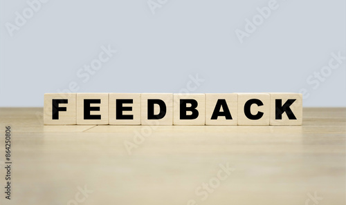 Feedback word written on wooden blocks. Feedback text for your desing, concept.
