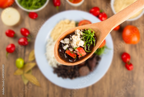 Feijoada. Traditional Brazilian food dish. Brazilian cuisine. Top view.