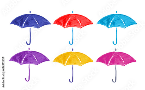 umbrella, protection, protect, childish, red, blue, yellow, colours, felt pen, autumn, background, children, childlike, climate, colours, wax crayons, doodle, drawing, felt, forecast, grunge, icon, illustration, isolated, marker, meteorology, naive, object, open, parasol, pen, rain, rainy, retro, scribble, season, seasonal, vignetting, sketchy, spring, symbol, weather, graphic, handle, design, vector, set, cute
