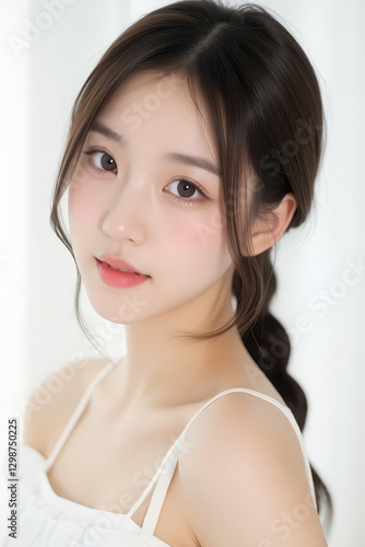 asian, model, woman, female, girl, beautiful, gorgeous, pretty, fashion, skin, skincare, korean, japanese, chinese, posing, pose, cosmetic, cosmetic, hair, salon, coiffure, braid, braided, braid, short, straight, portrait, photo, profile, black, brown, lipstick, face, natural, hot, sexy, attractive, brunette, make up, make-up, make-up, shirt, white, background, beauty, studio, teenage, lady, closeup