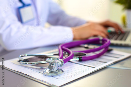 woman, doctor, white, medicals, clinic, female, medicine, care, work, health, stethoscope, smile, clinical, workplace, office, uniform, happy, health care, healing, doc, caucasian, medicare, medic, physician, cabinet, indoor, practice, robe, copy, gladness, practitioner, beautiful, business, confident, background, young, reception, profession, specialist, job, notice, receptionist, person, occupation, tied-up, blue, space, clipboard, surgeon, health care