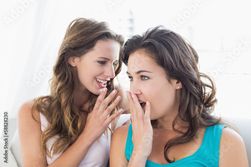 Female friends gossiping in the living room