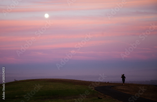 cardio, copy space, wellness, view, track, sky, runner, run, pink, moon, lifestyle, jogger, healthy, fitness, female, exercise, dusk, athlete