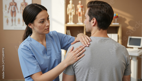 woman, physical therapist, male, shoulder, exam, health care, patient, medicals, office, therapy, anatomy, indoor, professional, treatment, consultation, doctor, young, care, wellness, physical, health, body, rehabilitation, support, pain, healer, assistance, clinic, relaxation, sharpened, trust, communication, injury, healing, hand, observation, recovery, assessment, lifestyle, education, practitioner, diagnosis, empathy, strength, guidance, physical therapy, hospital