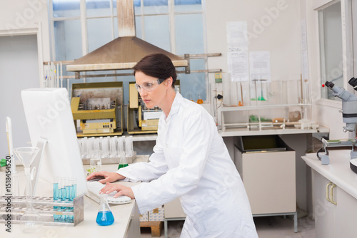 people, researcher, labcoat, typing, desktop, test tube, scientist, experimentation, analytical, innovation, medicals, scientific, technology, laboratory, female, adult, european, focused, bench, chemical, microscope, glassware, flask, funnel, rack, computer, keyboard, shelf, cabinet, paper, lighting, erlenmeyer, datum, analysis, workspace, research, experiment, science, chemical, ventilated