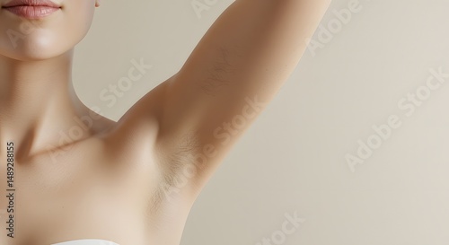 armpit, hair, raise, natural, neutral, minimalist, indoor, body, positivity, female, skin, woman, torso, beauty, shaving, grooming, arm, shoulder, hand, lip, neck, underarm, closeup, minimal, studio, confidence, bare, acceptance, feminine, detail, sensitive, hygiene