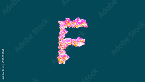 festal pink and orange fashion diamonds letter F on blue, isolated - object 3D illustration