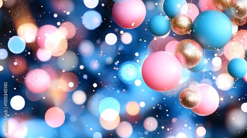 Festive bokeh border concept. Colorful bokeh with spheres and sparkles