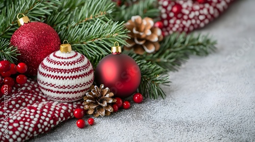 christmas, ornament, holiday, decoration, pine, red, gold, festive, pine cone, winter, berry, knitted, background, texture, seasonal, cheerful, warm, celebration, shiny, traditional, bright, cosy, nature, accessory, arrangement, design, style, fabric, table, pattern