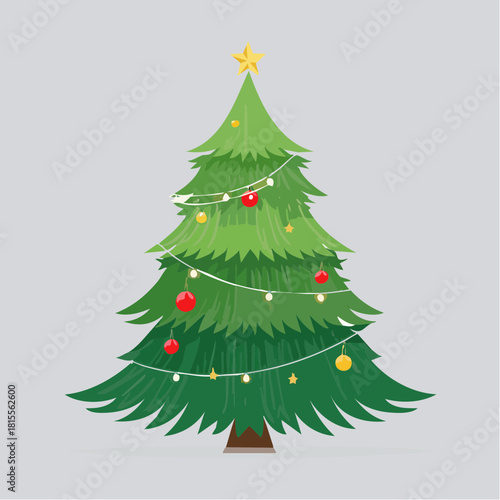 christmas, tree, illustration, holiday, festive, ornament, star, decoration, pine, evergreen, season, winter, celebration, new year, design, graphic, vector, art, cartoon, traditional, christmas, isolated, background, card, greeting, light, ball, red, yellow, green, sparkle, bright, happy, merry, december, tree branch, foliage, plant, fir, conical, shape, stylised, simple, minimalist, cheerful, holiday season