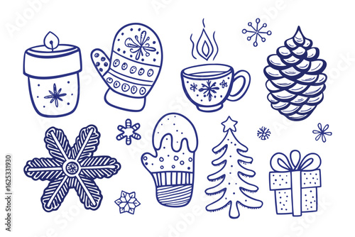 Festive doodles: Hand-drawn winter illustrations capture the cozy spirit of the season, featuring a collection of festive elements for holiday cheer.