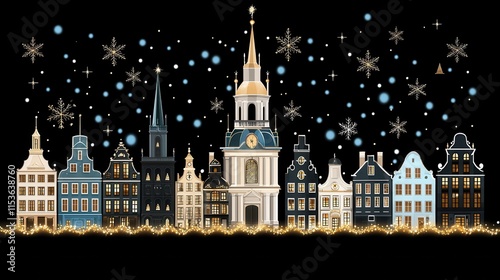 city landscape, holiday, architecture, urban, city, modern, whimsical, fantasy, high-coloured, ornament, background, new year, decor, landmark, twinkle, bright, photo, attractive, evocative, night view, glimmering, nightscape