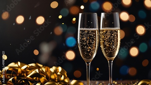 festive, new year, party, champaign, confetti, celebration, success, glasses, wine, christmas, drink, alcohol, holiday, new, beverage, year, gold, decoration, eve, anniversary, liquid, celebrate, wine glass, flute, object, 2, crystal, toast