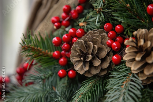 festive pinecones and berries for holiday decoration