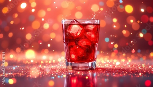 Festive Red Cocktail with Ice in a Glass