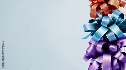Festive Ribbon Bows: A vibrant stack of bows on a light background perfect for celebrations