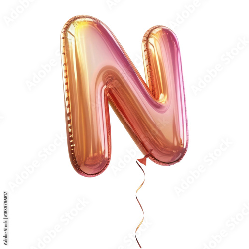 Festive shiny rose gold balloon letter n from alphabet. celebration element for party, birthday, or anniversary decoration, happy