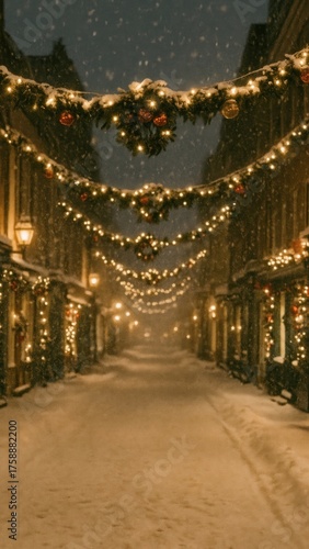 christmas decoration, winter landscape, holiday season, evening scene, snow-covered, street light, atmosphere, wonderland, beautiful, christmas, wallpaper, peaceful, evening, festive, garland, holiday, light, mobile, season, serene, street, string, winter, decor, grain, lamp, night, scene, snowy, cosy, film, path, snow, soft, view, warm, decorative